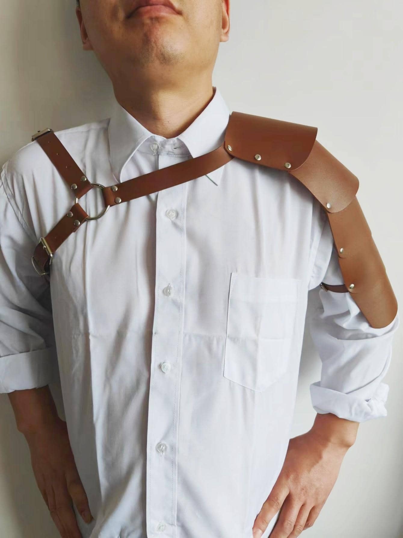 1pc Men's Single Shoulder Leather Punk Decorative Leather Suspenders