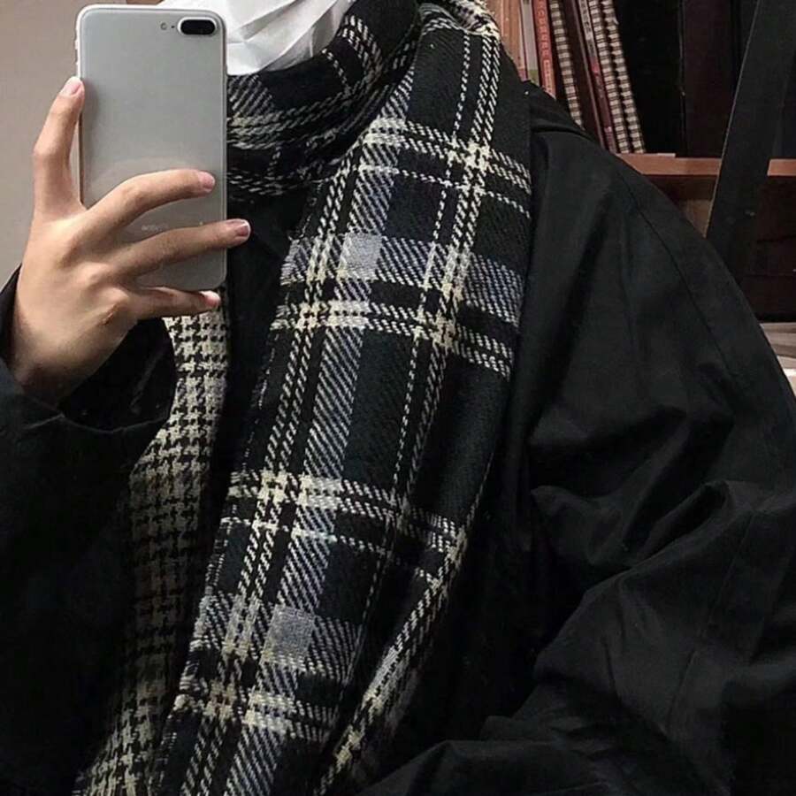 1pc Men's Black Double-sided Plaid Square Winter Scarf, Warm And Fashionable For Daily Use