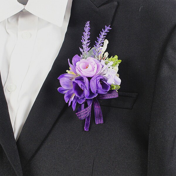 1pc Men's Classic Style Wedding Boutonniere With Purple Artificial Flowers & Pine Cones & Lavender & Lily
