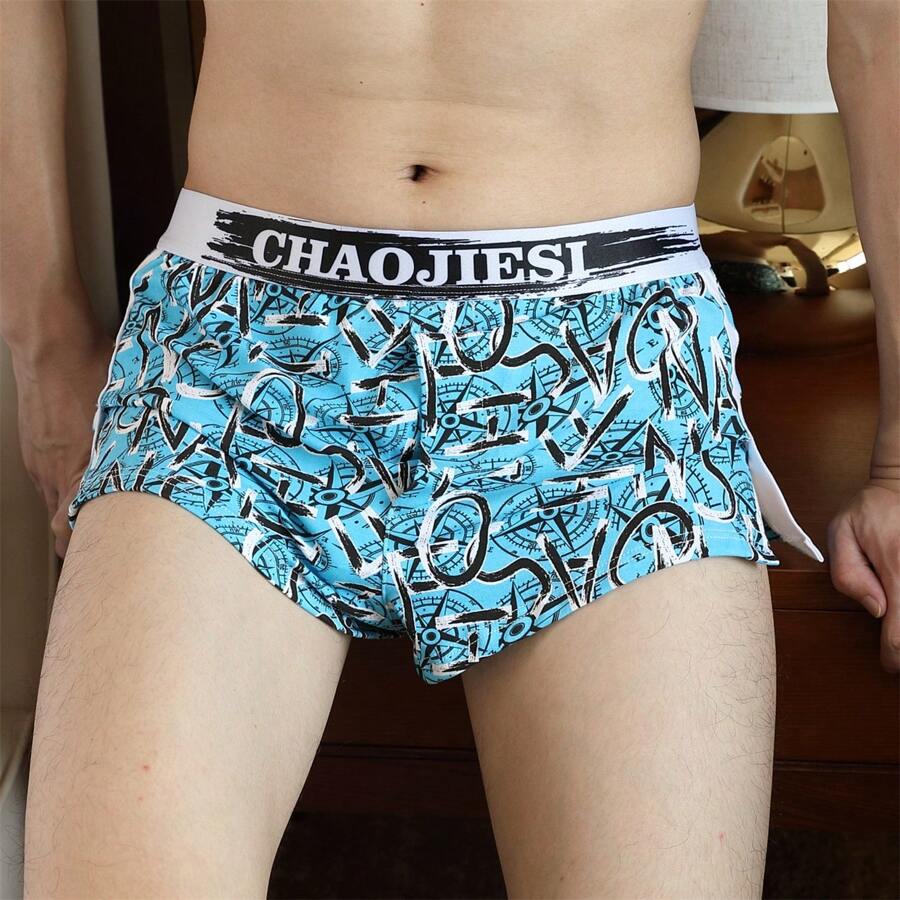 1pc Men's Trendy Breathable Boxer Shorts, Including Loose Fit Allover Head Print, Large Size, And Comfortable Underwear