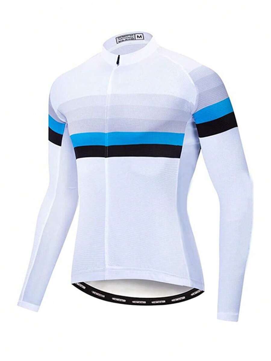 1pc Men's White Color-Blocked Cycling Jersey Long Sleeve Top Gym Clothes Men