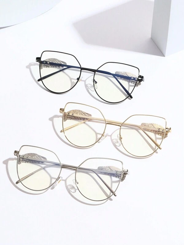 1pc Metal Cat Eye Frame Fashion Anti-Blue Light Glasses With Luxurious Metal Wing Decoration, Oversized Transparent Lens Suitable For Men And Women, For Daily Decoration, Reading, Gaming, Computer, Back To School, Featuring Fatigue Resistance, Vision Improvement, Simplicity And Portability, Also Matching Prescription Glasses