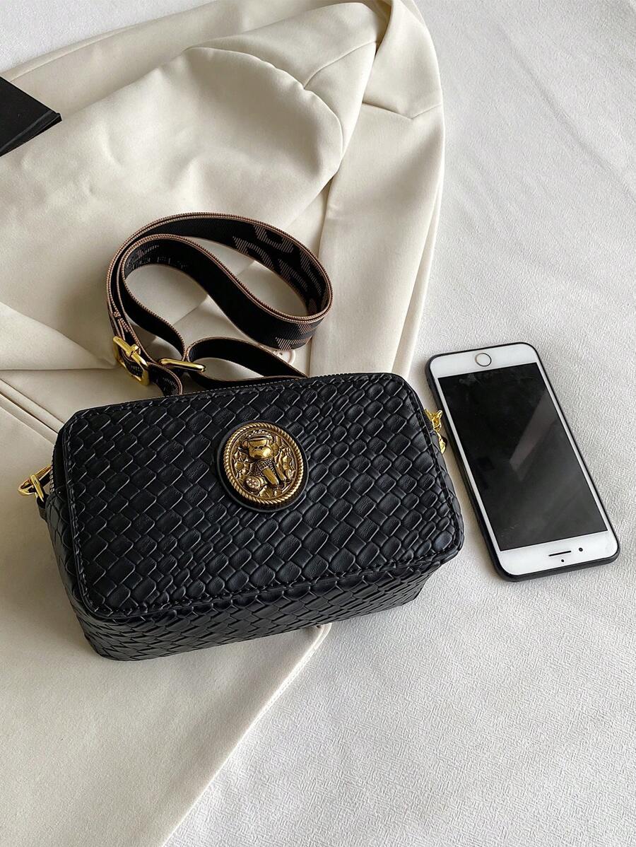 1pc Metal Decorated Solid Color Simple Crossbody Bag With Multiple Compartments, Suitable For Women'S Daily Use