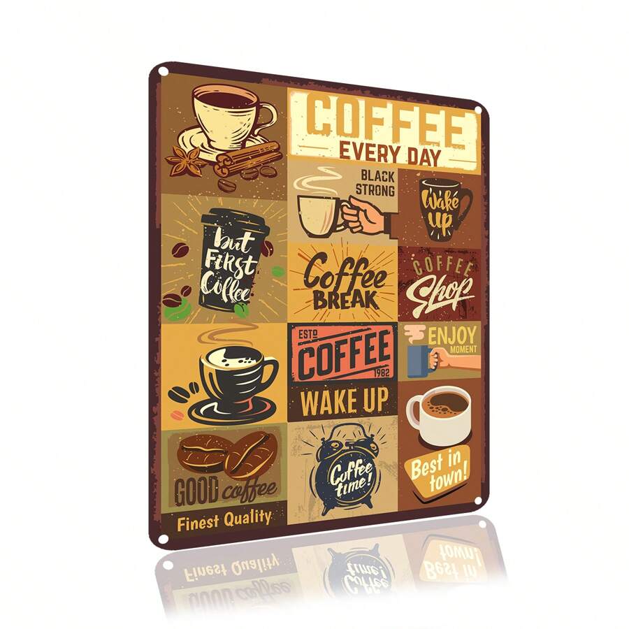 1pc Metal Tin Sign Coffee Retro Sign Aluminum Signs for Kitchen Home Office Bar Cafe Wall Decor 8x12 Inches