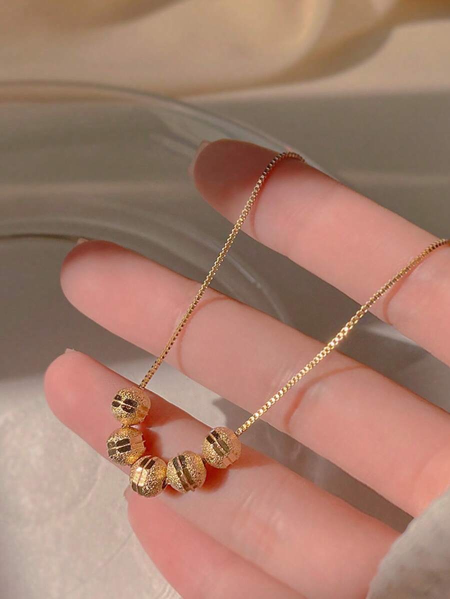 1pc Metallic Beaded Pendant Necklace For Women, Perfect For Summer Date Night