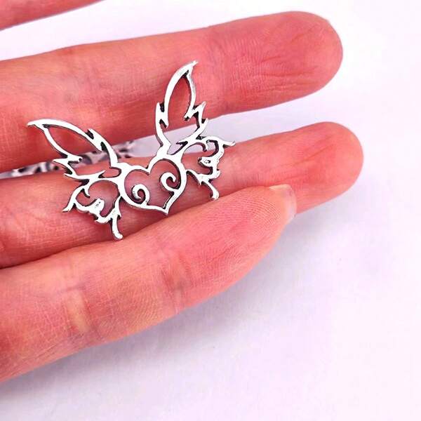 1pc Metallic Pendant With Hollow Out Butterfly & Heart Shape For Necklace, Bracelet, Keychain, Earrings As Birthday Gift