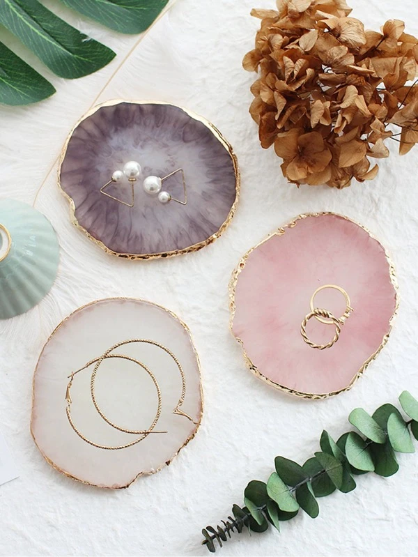 1pc Metallic Trim Jewelry Storage Tray, ABS Jewelry Display Tray, Necklace Bracelet Ring Earring Tray Holder