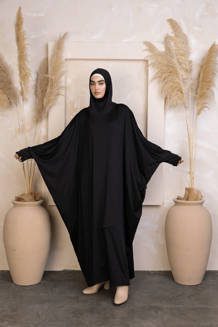 1pc Milk Silk Integrated Headscarf Batwing Abaya Prayer Dress