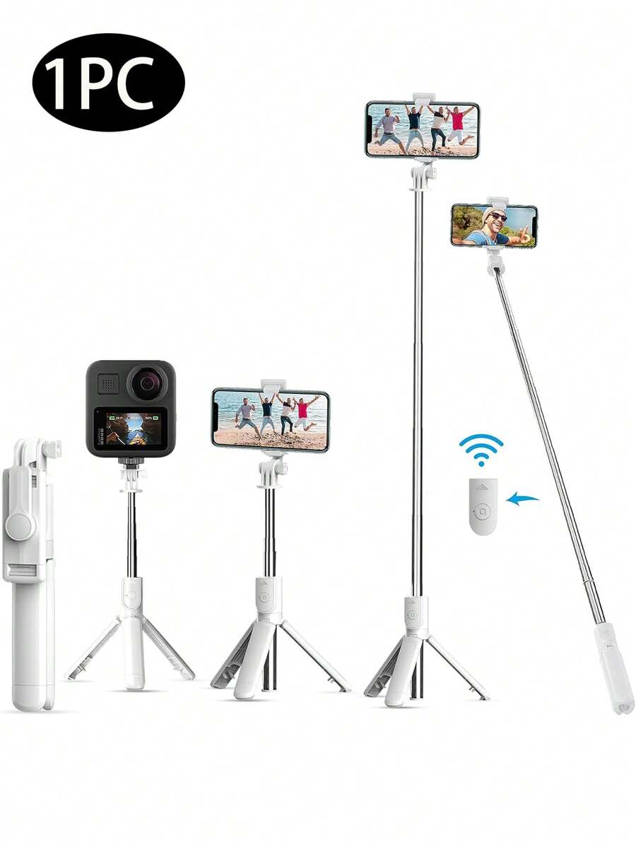 1pc Mini 4-In-1 Telescopic Wireless Remote Control Selfie Stick Tripod, 360° Rotation Stabilized Selfie Stick, Detachable Remote Shooting Mobile Phone Universal Selfie Stick Mobile Phone Bracket Camera Artifact, Anti-Shake Selfie Stick, Mobile Live Tripod All-In-One Selfie Stick, Telescopic Handheld Stable And Universal, Suitable For IPhone/Samsung GoPro Small Camera IOS And Android/Birthday/Valentine's Day Gift/Easter/Boyfriend And Girlfriend, You Can Record Beautiful Moments At Any Time When You Are Camping And Traveling Outdoors(White, Battery Not Included),Button Battery Model: CR1632