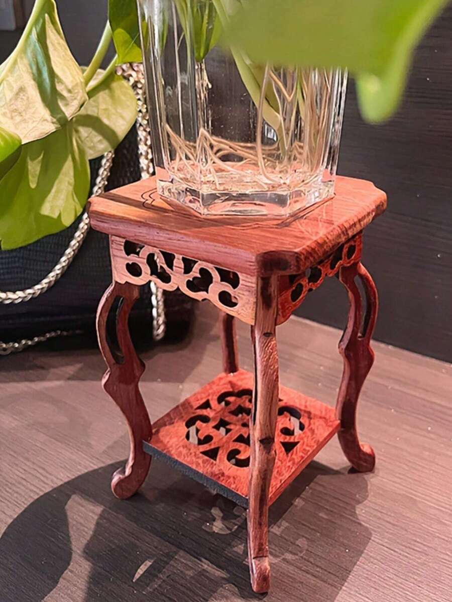 1pc Mini Wooden Flower Stand, Bonsai Storage Display Rack, Desktop Potted Plant Base, Mahogany Carving Handicraft Ornament, Flower Pot Base, Room Decor, Home Decor