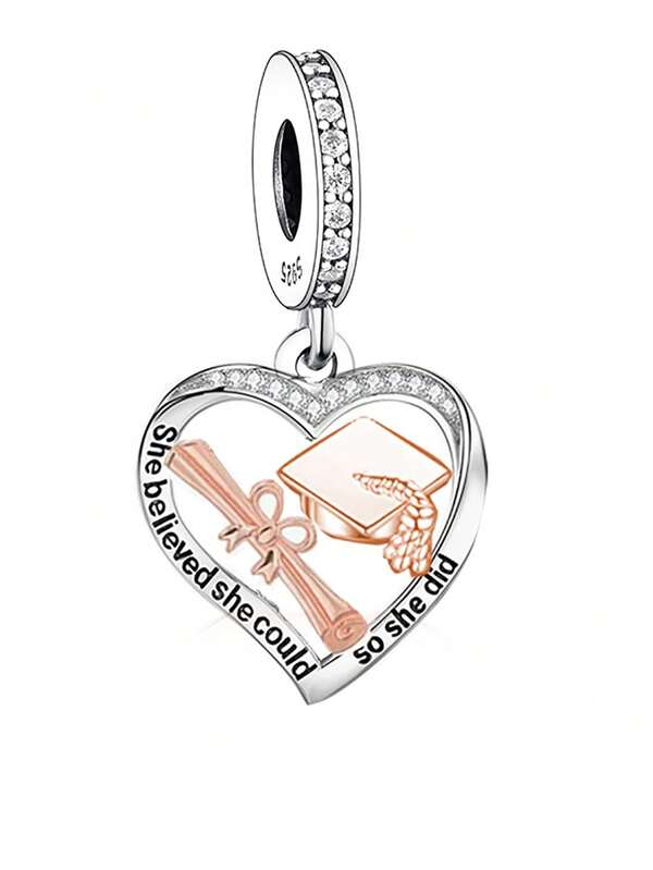 1pc Minimalist 925 Sterling Silver Graduation Pendant Bead With 'She Believed She Could, So She Did' Engraving, Perfect Gift For Female Classmates