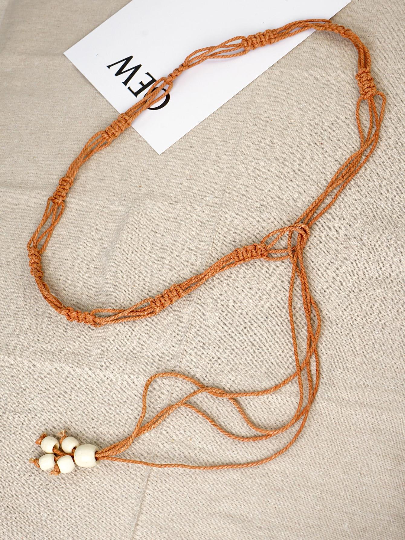 1pc Minimalist Braided Waist Belt Tie With Big Beads Decoration For Women's Dress