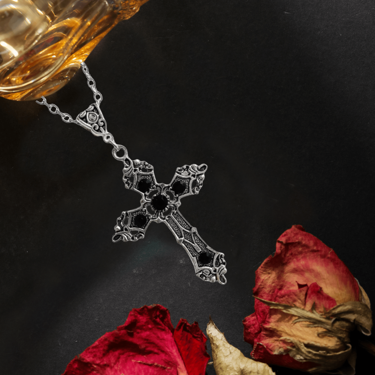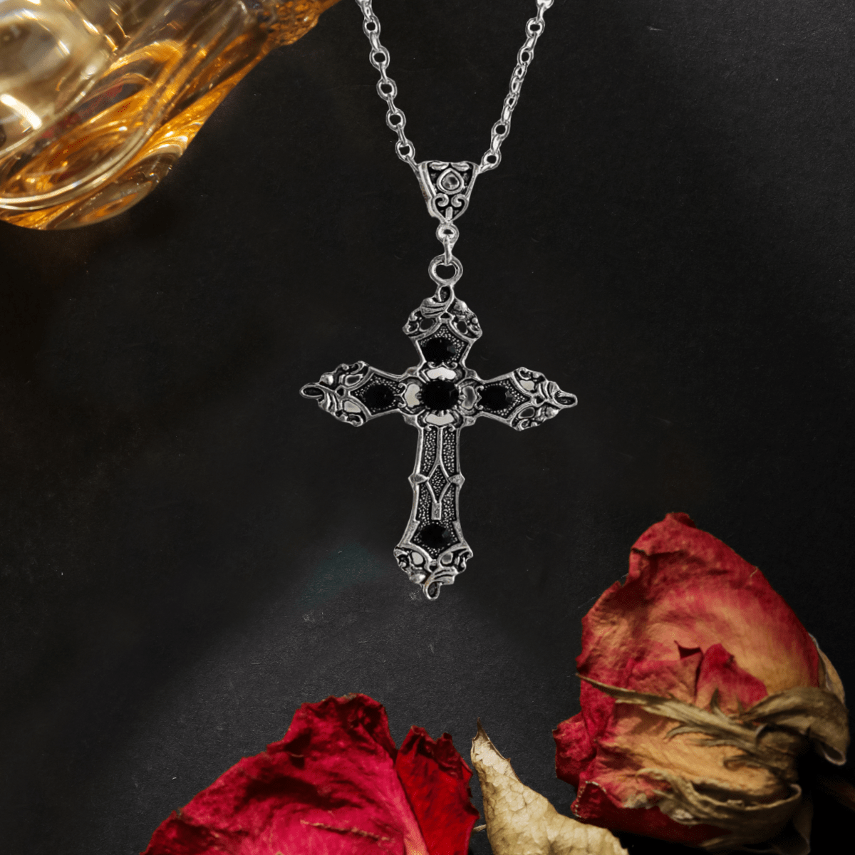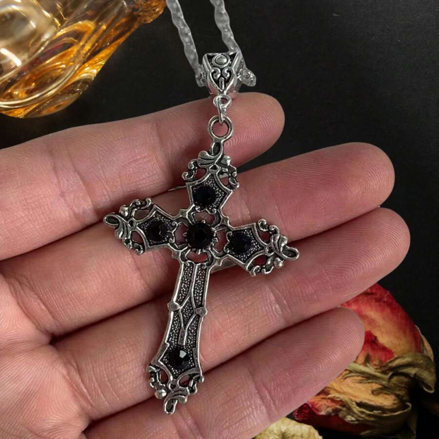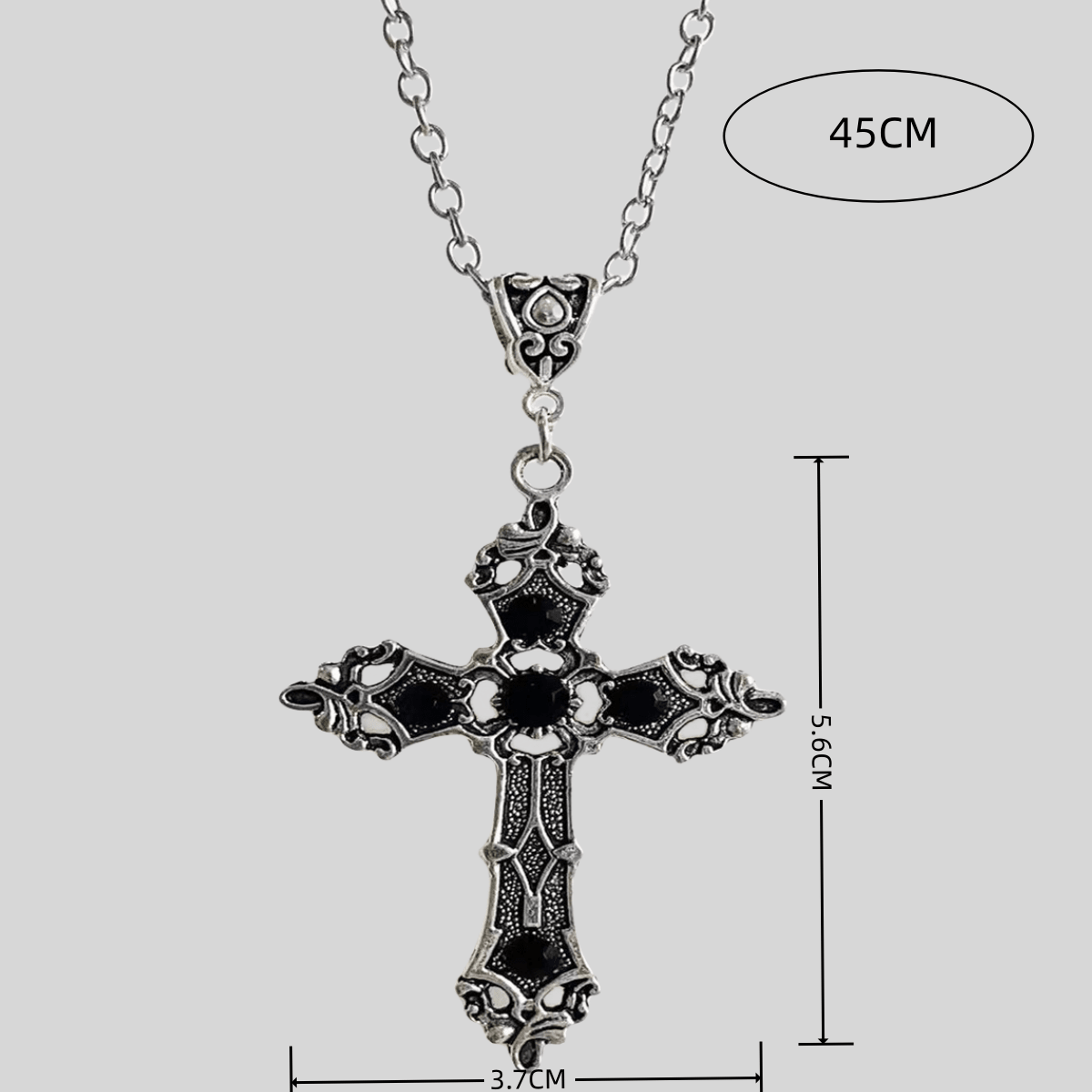 1pc Minimalist Gothic Style Vintage Gemstone Cross Pendant Necklace, Suitable For Both Men And Women