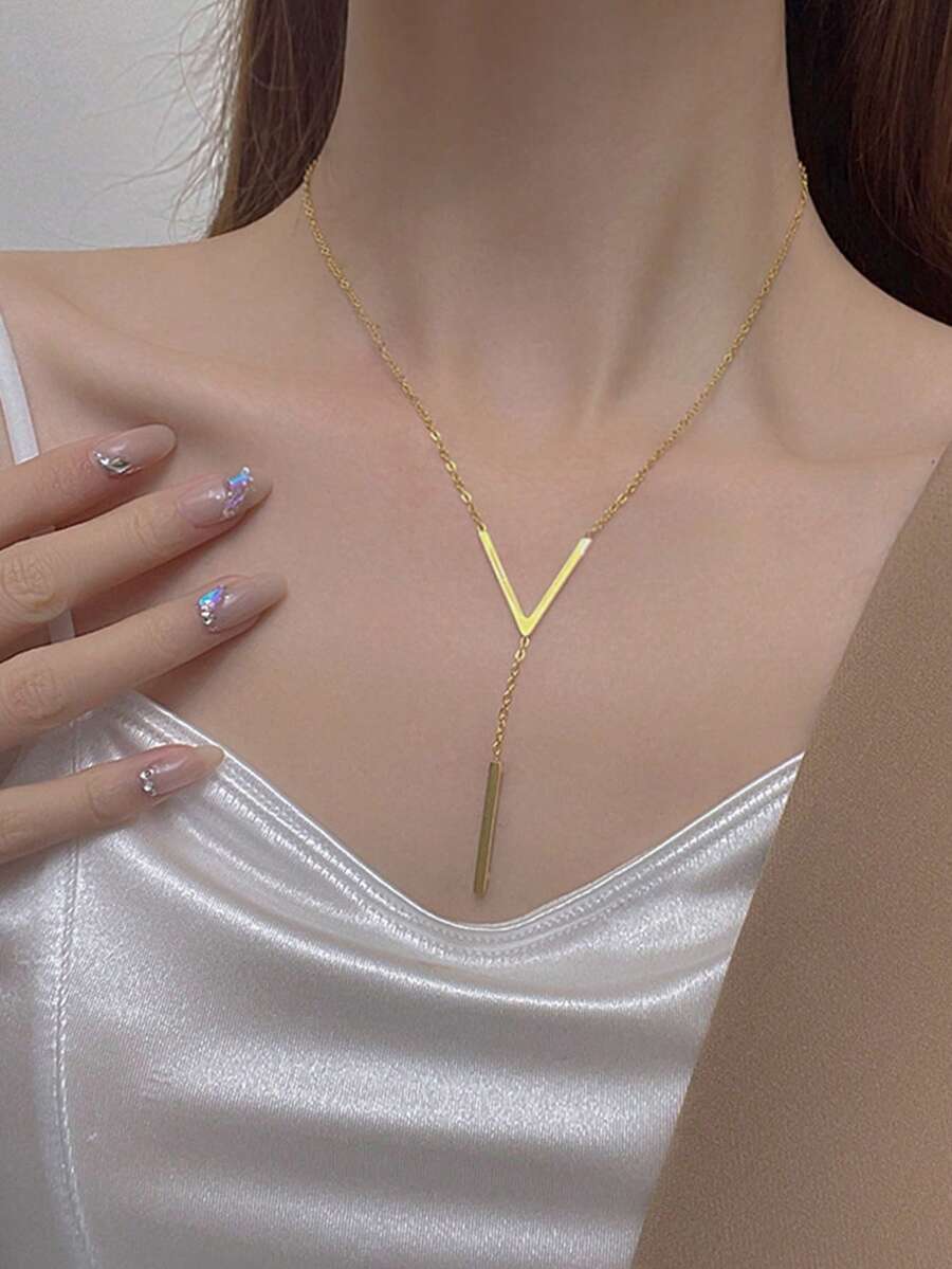 1pc Minimalist Letter Pendant Stainless Steel Necklace, Gold, Fashionable Long Chain Jewelry Gift, Suitable For Women'S Party Accessories