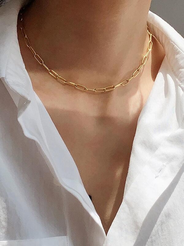 1pc Minimalist Stainless Steel Plain Chain For Women
