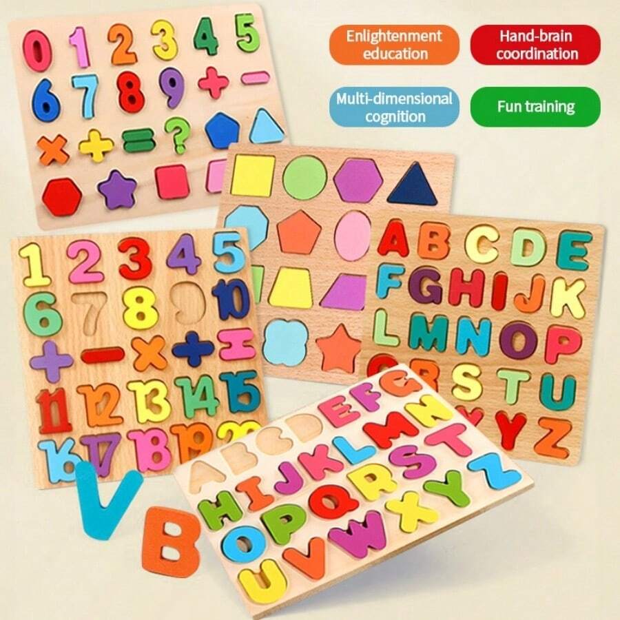 1pc Montessori Educational Puzzle Toy With Numbers And Letters, For Color, Number And Shape Recognition, Geometric Wooden Jigsaw Puzzle, Random Shape And Letter, Perfect Christmas Or New Year Gift