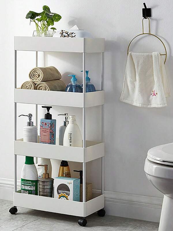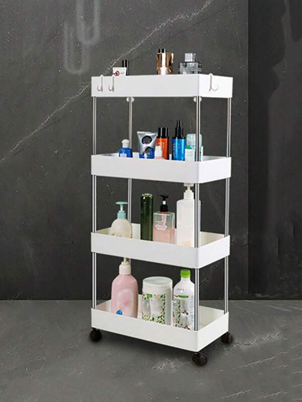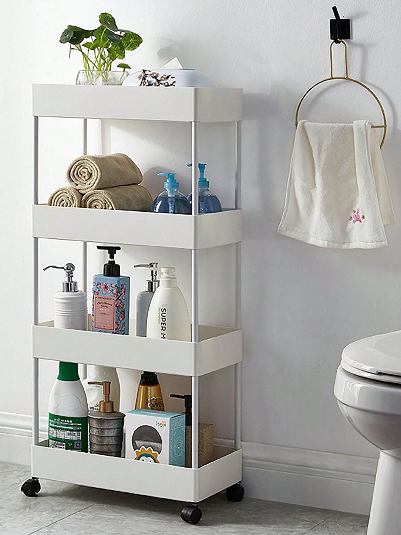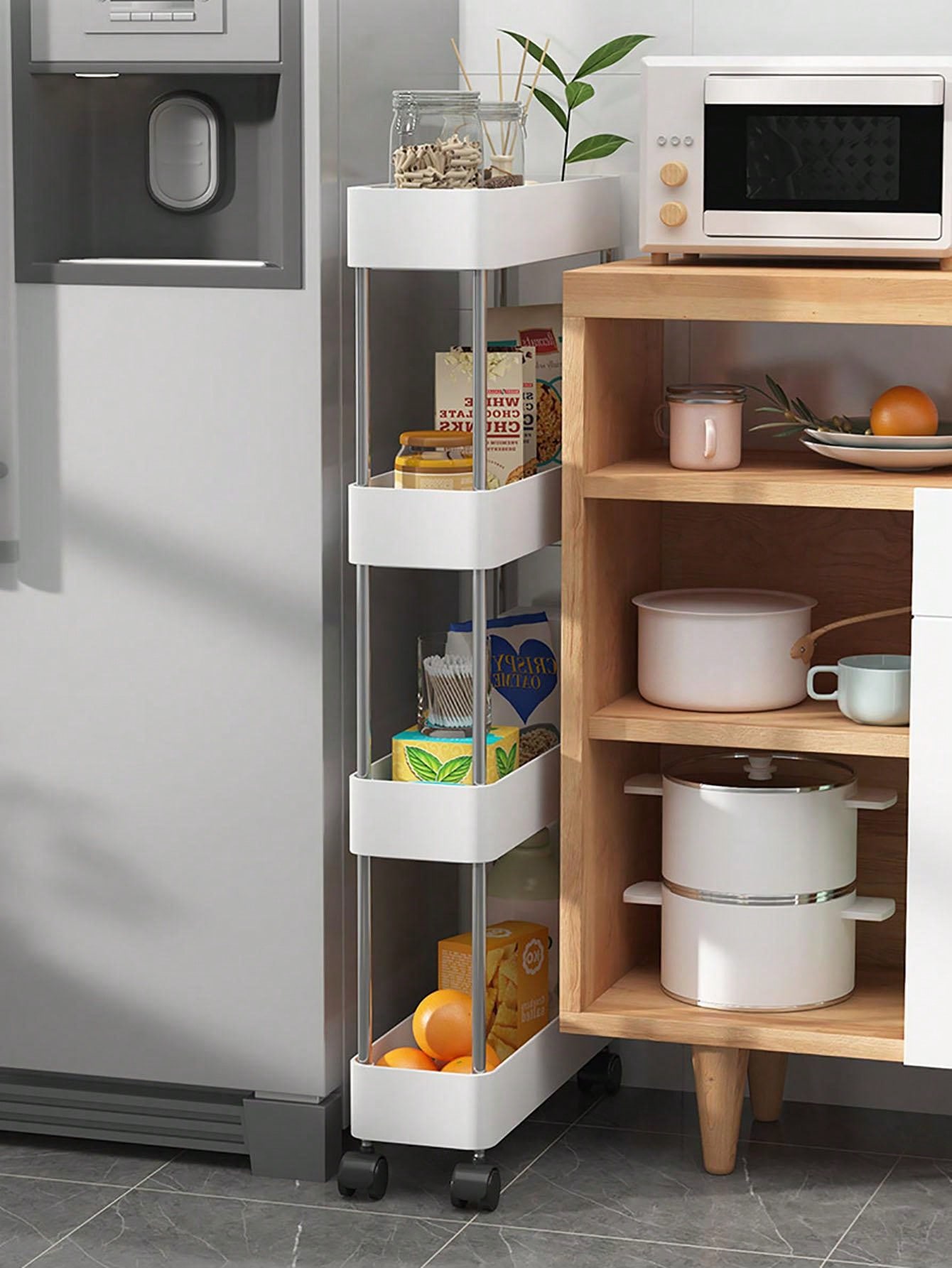 1pc Movable 4-Tier Floor-Standing Storage Rack With Wheels For Kitchen, Home, Living Room Organizer Cart Shelf