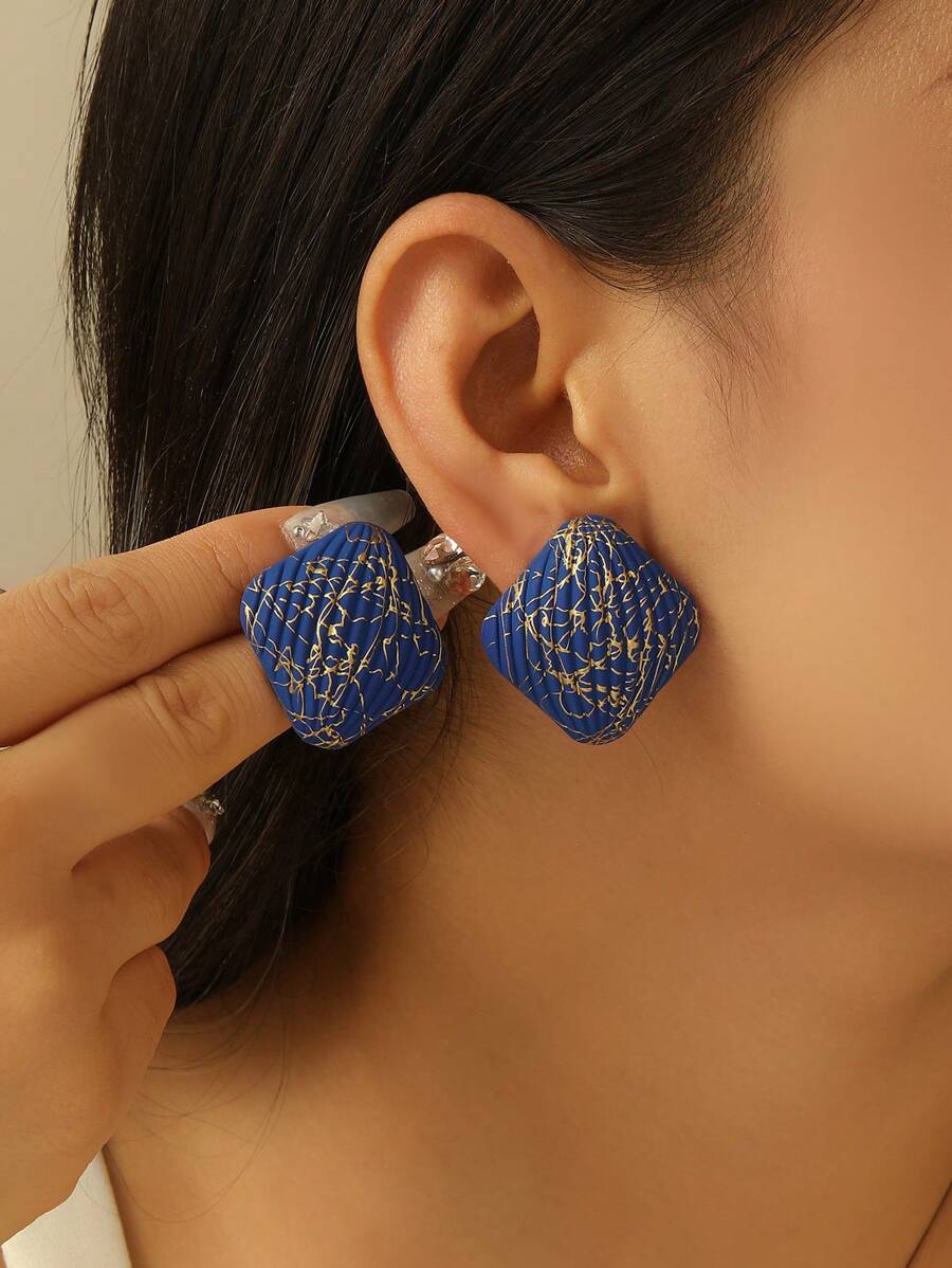 1pc Multi-Color Square Shaped Wire Thread Earring For Women