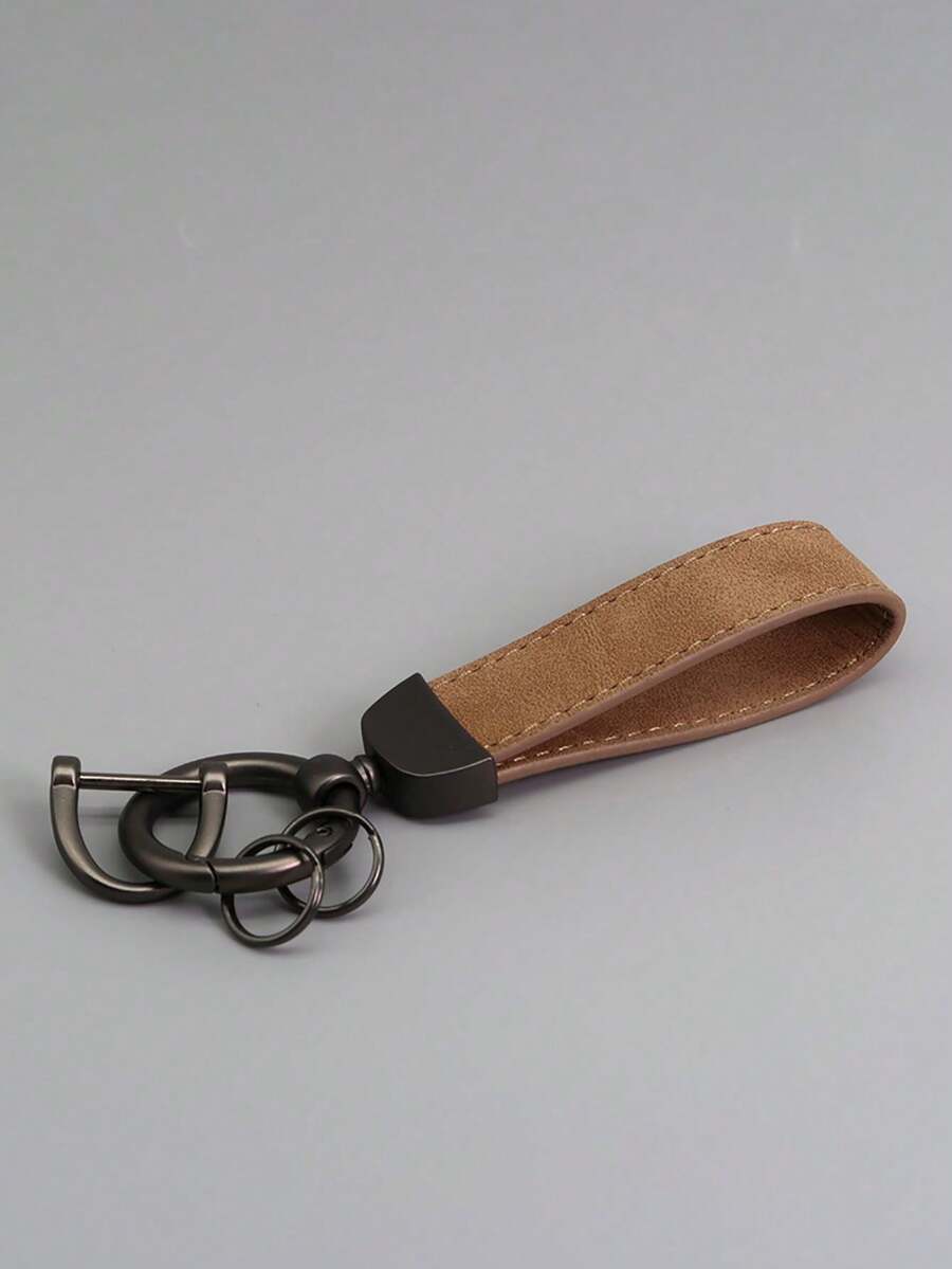 1pc Multi-color New Style Fluffy Leather Car Keychain With Metal Anti-lost Key Ring & Customizable Logo Printing, Leather Key