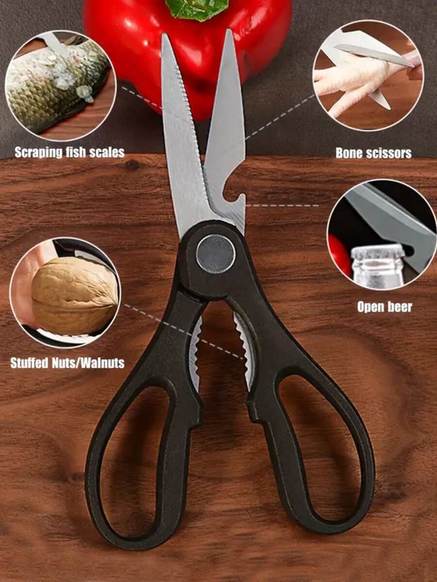 1pc Multi-functional Kitchen Scissors For Cutting Vegetables, Fish, Opening Bottles, Clipping Walnuts, Barbecue Food