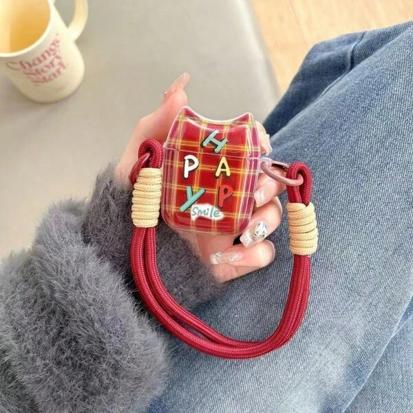 1pc Multicolor Cat Ear Happy Letter Earphone Case For Airpods