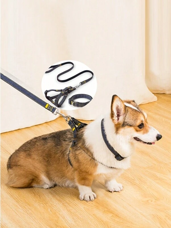 1pc Multicolor Denim Pet Harness Set Including Chest Strap, Collar, And Leash, Suitable For Large, Medium And Small Dogs