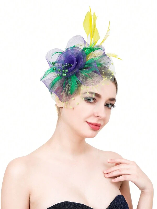 1pc Multicolor Feather Headband & Hat Clip, Suitable For Horse Racing, Birthday Party, Beach Party, Family Gathering And Daily Wear
