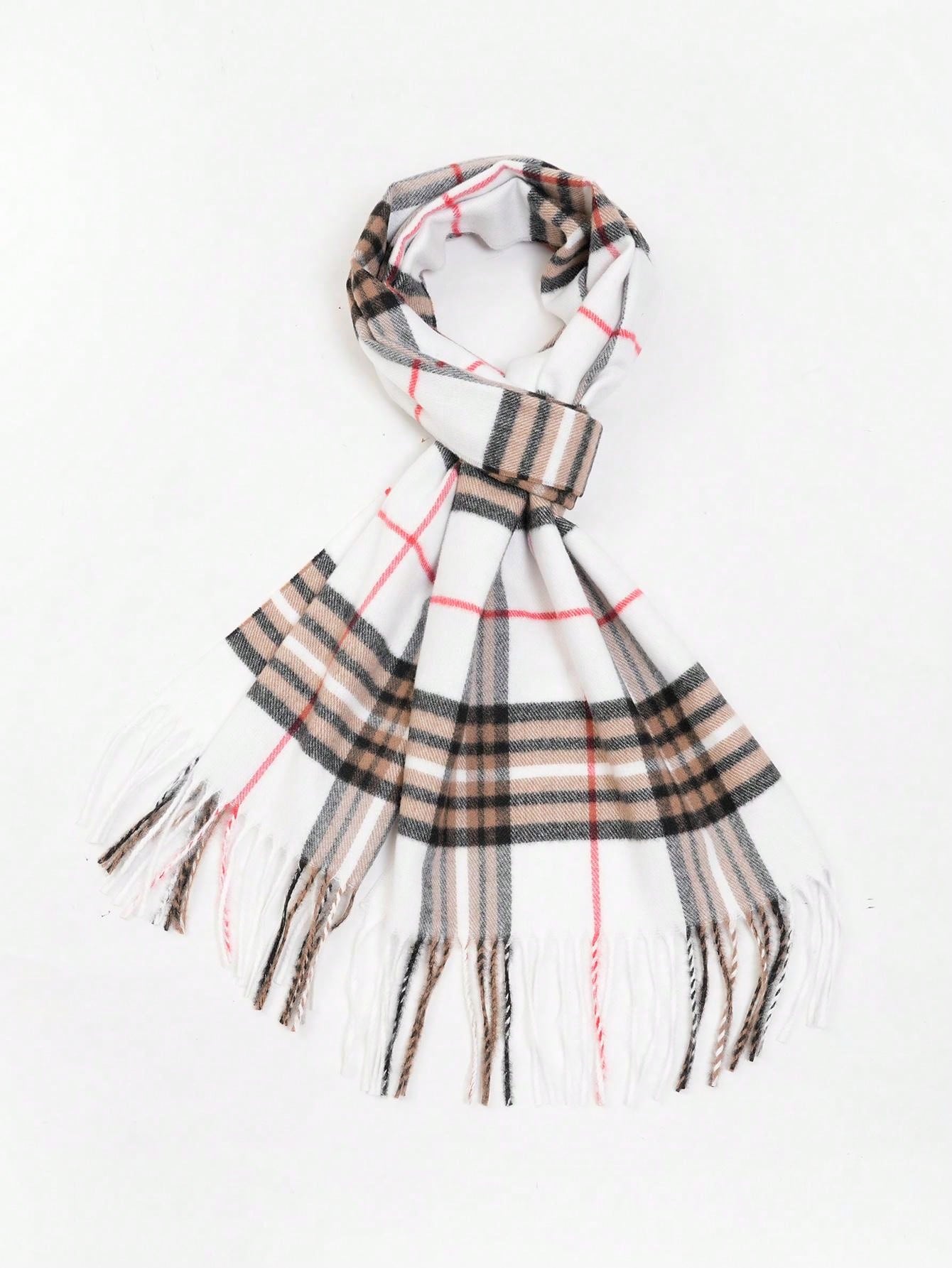 1pc Multicolor Plaid Faux Cashmere Scarf With Tassels, Suitable For Daily Commuting And Outfit Matching