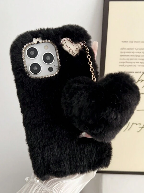 1pc Multicolor Plush Love Heart Pendant Phone Case Compatible With Apple, Samsung, Google, Moto Phones