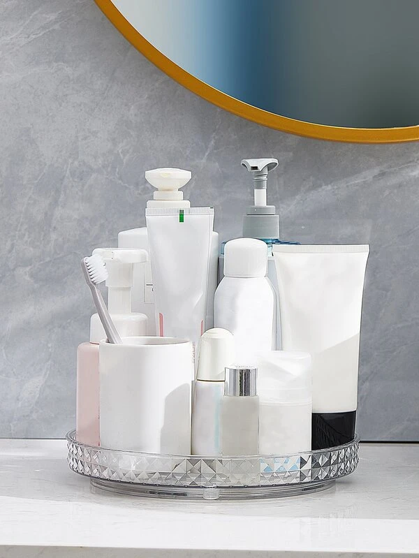 1pc Multifunction Rotatable Storage Rack, Clear PET Bathroom Countertop Storage For Home