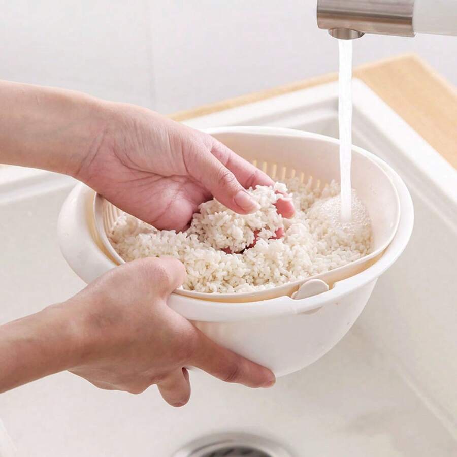 1pc Multifunctional Double-Layer Drain Basket For Kitchen, Blue Vegetable And Fruit Basket, Rice Washing Drainer, Vegetables And Fruits Drainage Collection Basket