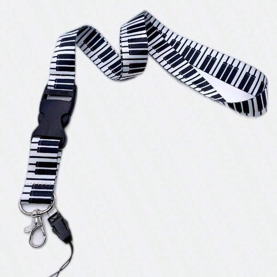 1pc Music Note Printed Lanyard With Metal Clip, Black & White