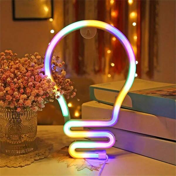1pc Musical Note/Light Bulb /Flame Neon Sign,LED Neon Light Battery/USB Powered Decorative Light, Table And Wall Decorative Light, For Play Area Room, Bedroom Room ,Interior Decor,Dormitory, Wedding Anniversary,Valentine'S Day, Birthday Party, Home Decoration