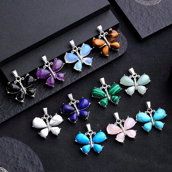 1pc Natural Crystal Pendant With Butterfly Shaped Design For Home Decor Or Healing Crystal Butterfly Necklace