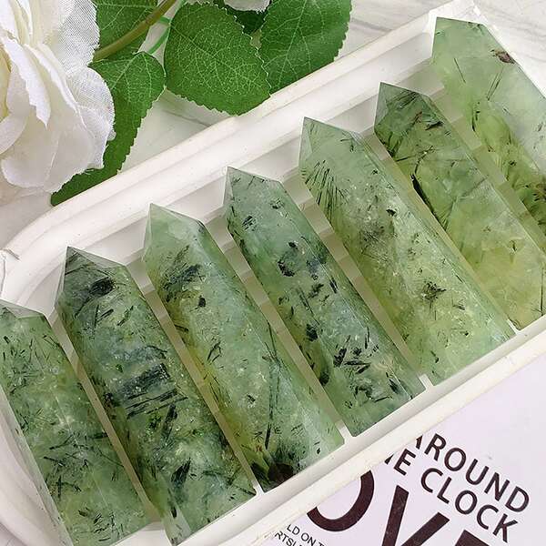 1pc Natural Crystal Quartz Prehnite Wand Point Healing Stones Aquarium Crafts Making Ornaments Home Decor