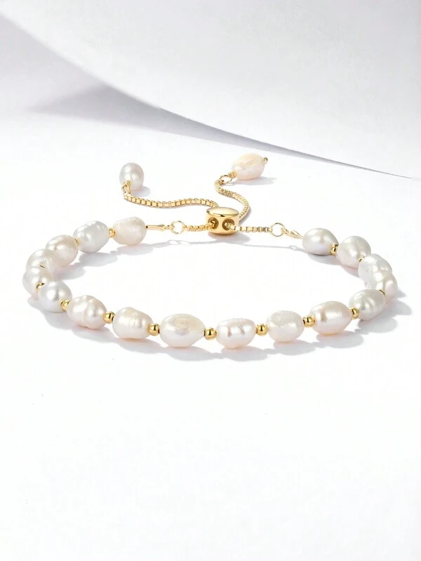 1pc Natural Freshwater Pearl & 925 Sterling Silver Material Fashionable Designed Bracelet For Women