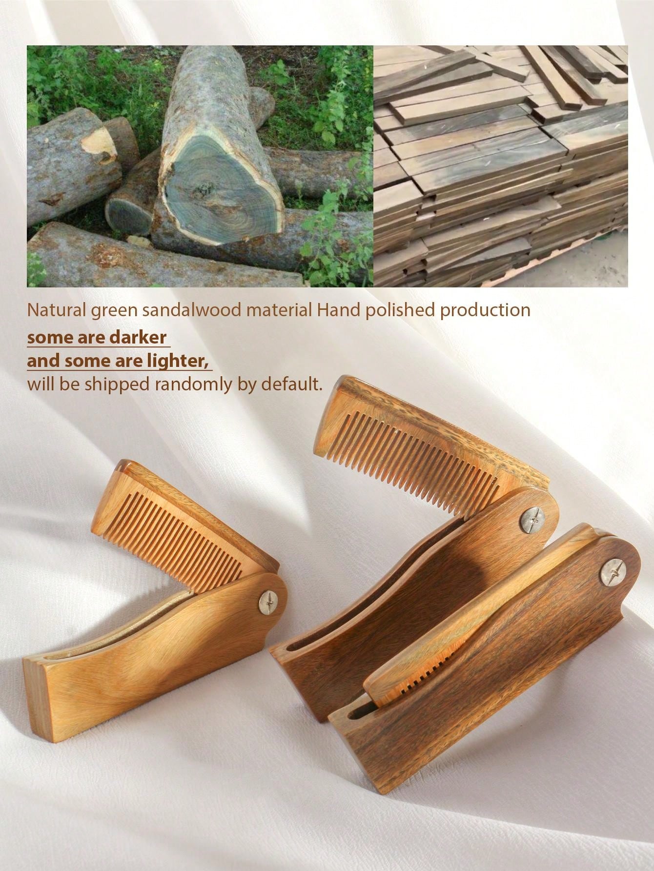 1pc Natural Green Sandalwood Folding Comb For Women Men Hair Beard Grooming, Multifunctional Portable Comb