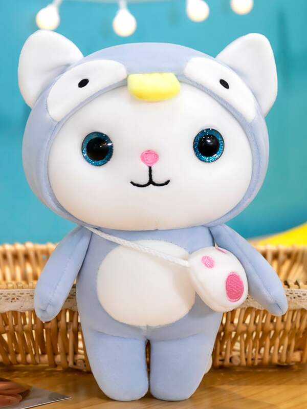 1pc Natural Penguin & Cat Shape Plush Toy With Hat For Pet Playing, Stress-relief Companion
