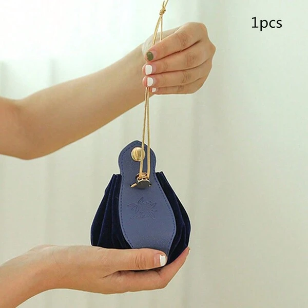 1pc Navy Blue Faux Leather Favor Bag With Drawstring & Velvet Lining For Wedding Favor, Gift Bag