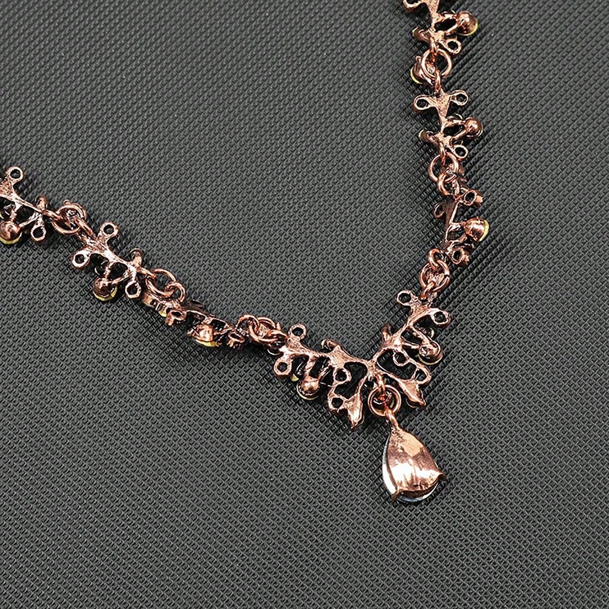 1pc Necklace And 2pcs Earrings Set With Gemstone Drop For Women, Electroplated Antique Red Copper Chain, Leaf Shaped Pendants In Purple Gray And Black Gray For Outfits Accessories