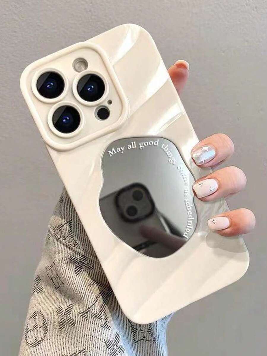 1pc New Arrival Beige Color Wave Pattern Mirror Phone Case Compatible With Apple Iphone