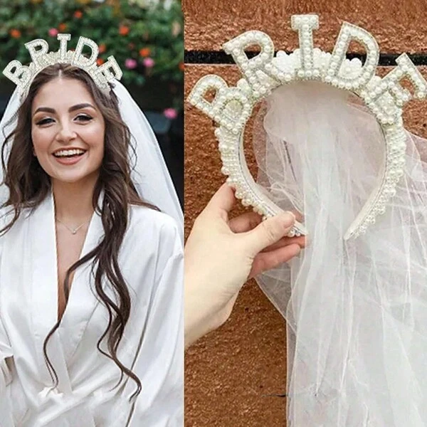 1pc New Arrival European And American Style Pearl Headband With Veil For Bridal Wedding Party