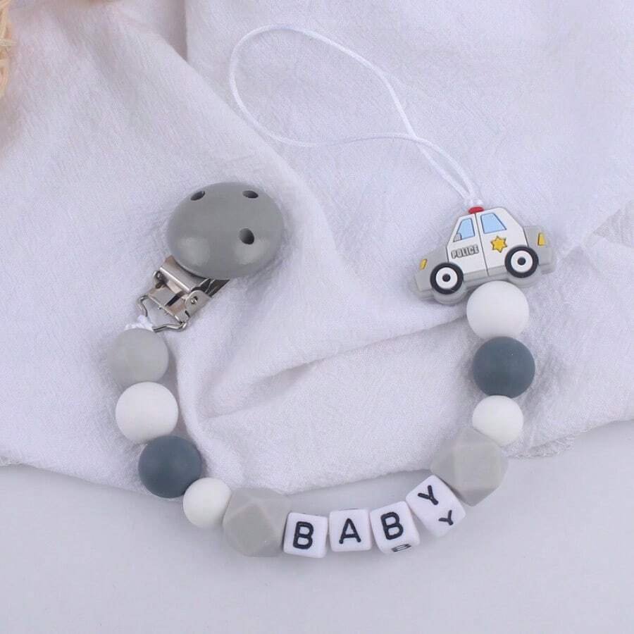 1pc New Creative Cartoon Patrol Car Themed Silicone Beaded Children'S Diy Handmade Jewelry With Wood Clip To Prevent Losing Jewelry