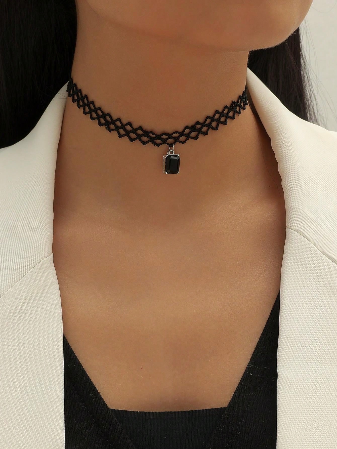 1pc New European & American Style Lace Mesh Square Pendant Necklace, Women's Short Chain