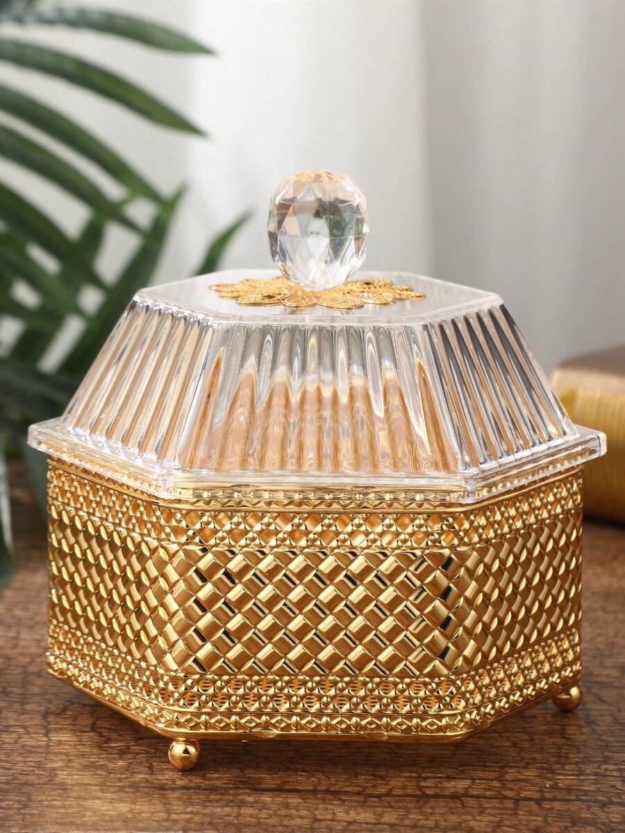1pc New European Style Electroplated Iron Art Hexagonal Snack & Dried Fruit Storage Set Candy Box With Lid, Coffee Sugar Jar, Storage Container