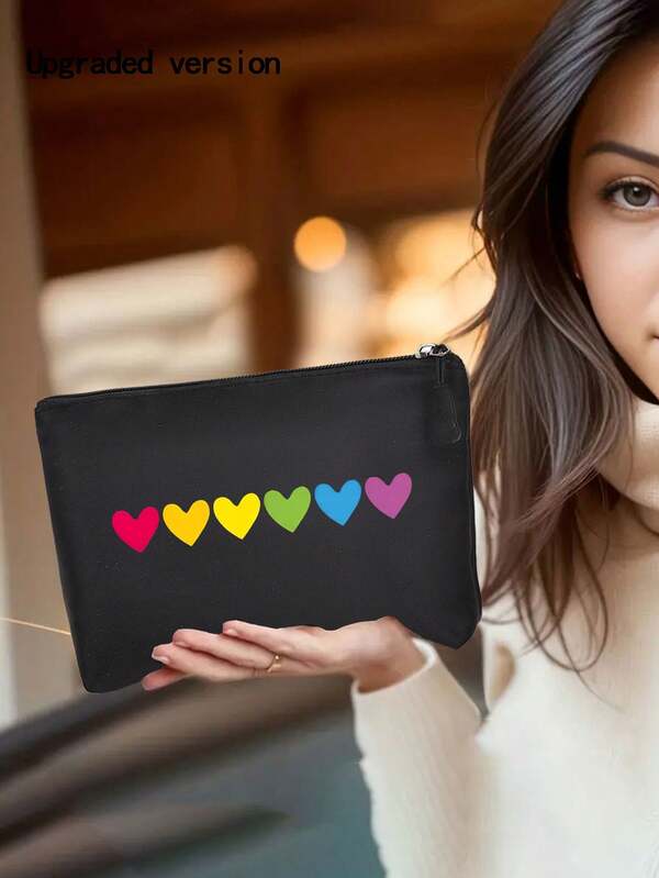1pc New Fashion Makeup Bag With Simple Heart Print - Multi-Functional Cosmetic Bag/Clutch/Portable Handbag, Great For Travel Or Gift, Easy To Carry Cosmetic Organizer Bag/Toiletry Bag With Zipper Closure