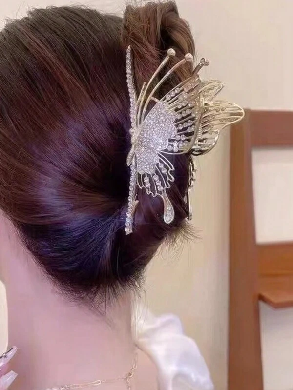 1pc New Rhinestone Butterfly Hair Clip For Women, Large Hair Claw For Ponytail, Ancient Style Hair Accessory, Shark Clip