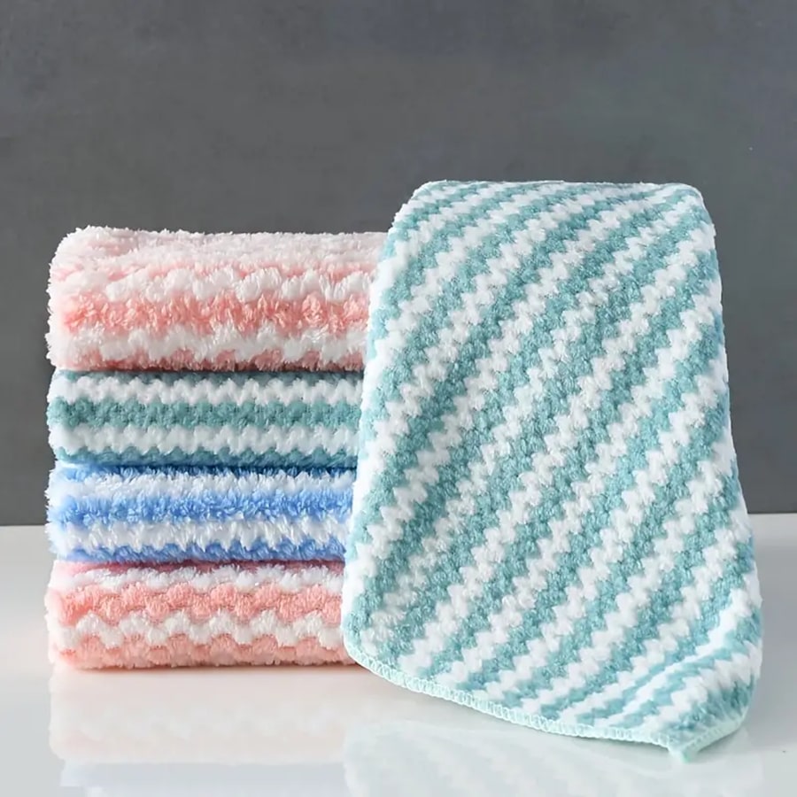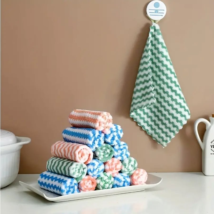 1pc New Water Ripple Dishwashing Cloth, Thickened Coral Fleece Rag, Non-stick Oil Rag, Kitchen Scouring Pad Cleaning Cloth