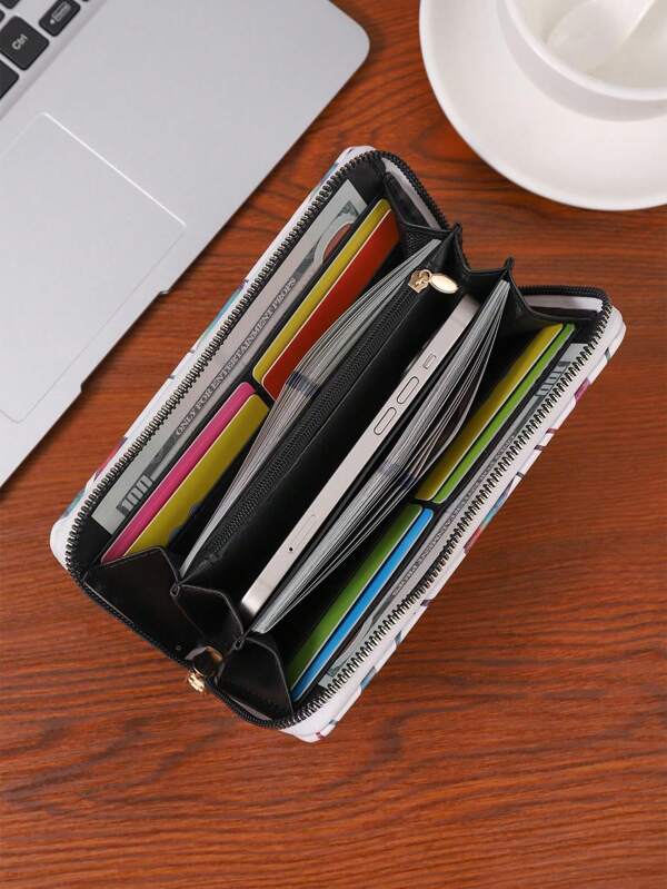1pc New White Pu Creative Pattern Women'S Wallet, Trendy And Versatile Portable Zipper Long Clutch, Multi-Functional High-Capacity Wallet