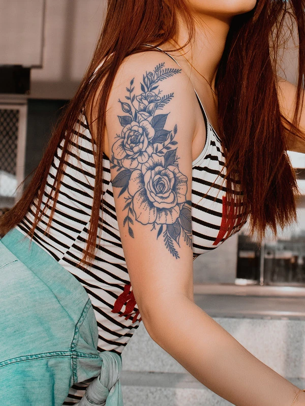 1pc Non-reflective Temporary Tattoo Sticker For Arms/body, Large Blue Flower & Leaf Patterned Herbal Semi-permanent Tattoo, Lasts Two Weeks Black Friday